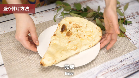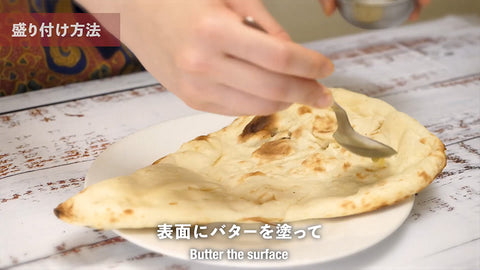 生地にギー(インドの精製されたバター)を何度も練り込んで焼いた香り豊かでしっとりした贅沢なナン。このまま食べても美味しいですが、ぜひ北インドのクリーミーなカレーとご一緒に召し上がってください。