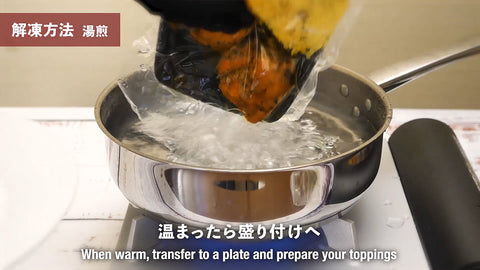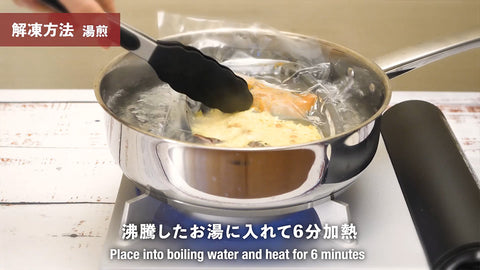 2. 湯煎:沸騰したお湯に入れて6分加熱