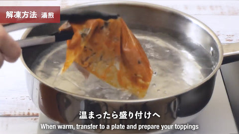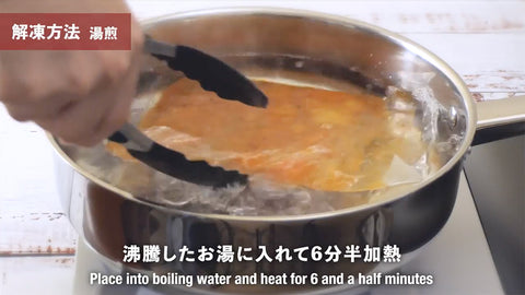 2. 湯煎:沸騰したお湯に入れて6分30秒加熱