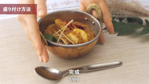 南インド コチン地方の香辛料を利かせた辛味と旨みが融合したカレー。プリプリの大きな海老がたくさん入っているのもうれしい贅沢な一品です。サラリとした南インドタイプのカレーなので、是非ライスか南インドのパンで召し上がってください。