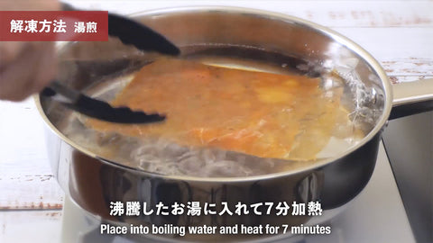 2. 湯煎:沸騰したお湯に入れて7分加熱