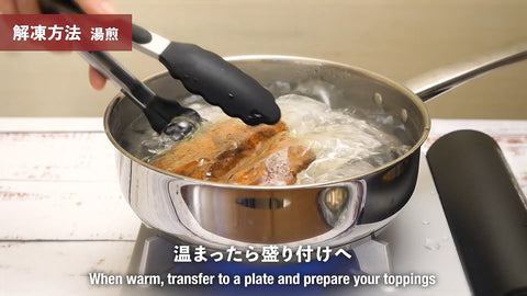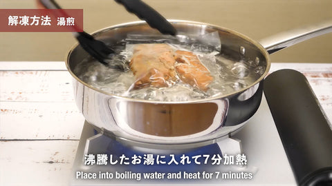 2. 湯煎:沸騰したお湯に入れて7分加熱