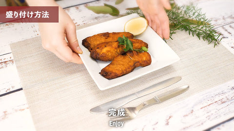 【原材料】メルルーサ(ニュージーランド産)、米粉、植物油脂、チリパウダー、しょうが・にんにく混合調味ペースト、食塩、ターメリック末