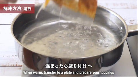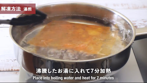 2. 湯煎:沸騰したお湯に入れて7分加熱