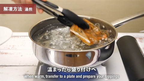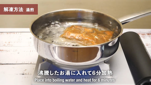 2. 湯煎:沸騰したお湯に入れて6分加熱