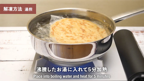 1. 湯煎:沸騰したお湯に入れて5分加熱、温まったら盛り付けへ