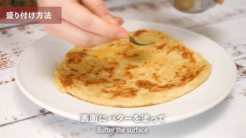 全粒粉の生地を広げ、畳んでギー(インドバター)を塗り伸ばし、また畳んで伸ばし……と何度も繰り返して最後は鉄板でパリッと焼く、インド風のデニッシュパン。デニッシュといっても甘くはないのでカレーやお惣菜と一緒に召し上がってください。口に入れるとじゅわっと広がるバターの香りとモチモチの食感がたまりません。